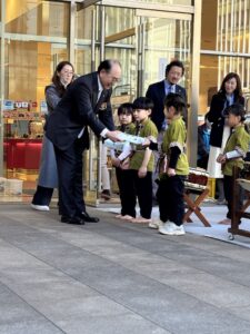 演奏終了後には、伊藤水戸西RC会長より子どもたちの代表へ記念品が手渡され、